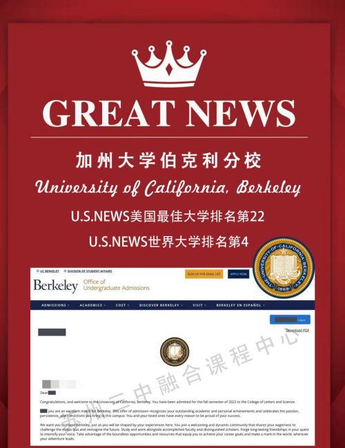 恭喜苏州三中融合课程中心Catherine Xu同学斩获美国“公立常春藤”大学加州大学伯克利分校录取!