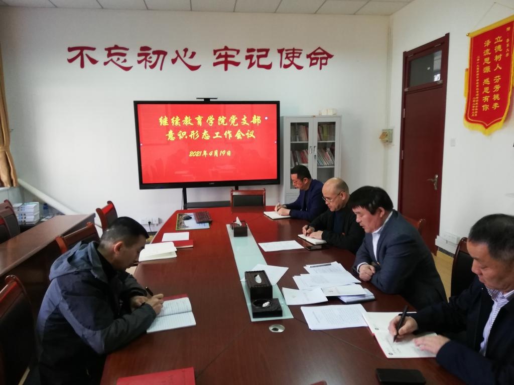 4月19日,鲁东大学继续教育学院党支部召开了2021年上半年意识形态工作会议,党支部全体成员参加,党支部书记、院长林杨主持会议。